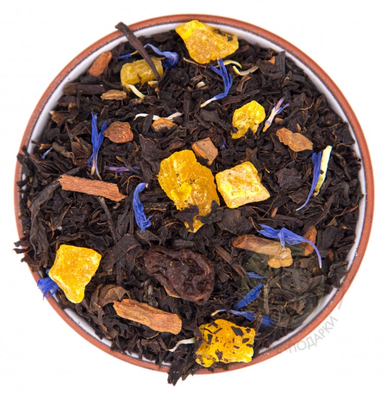 Чёрный чай, ананас жёлтый, корица, изюм, василёк, аромат марципана