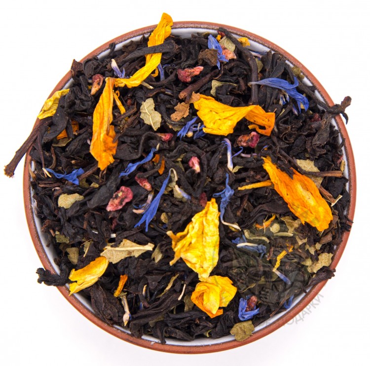 Чай индийский, ягоды малины, лепестки василька, сафлора, лист черной смородины, ароматизатор
