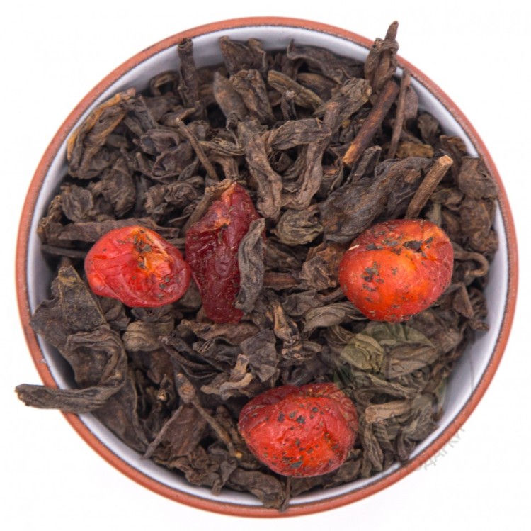 Вишневый Пуэр является довольно необычной вариацией старинного напитка, который высоко ценится искушенными гурманами. Состав чая представляет собой смесь дворцового Пуэра и натуральных кусочков спелой вишни, благодаря чему готовый настой раскрывается с неожиданной стороны. Для изготовления сорта используют листья чайных деревьев, произрастающих в китайской провинции Юннань на высоте около 1800 м над уровнем моря, где туманы и высокая влажность позволяют получить сырье с насыщенным вкусом и неповторимым ароматом.
